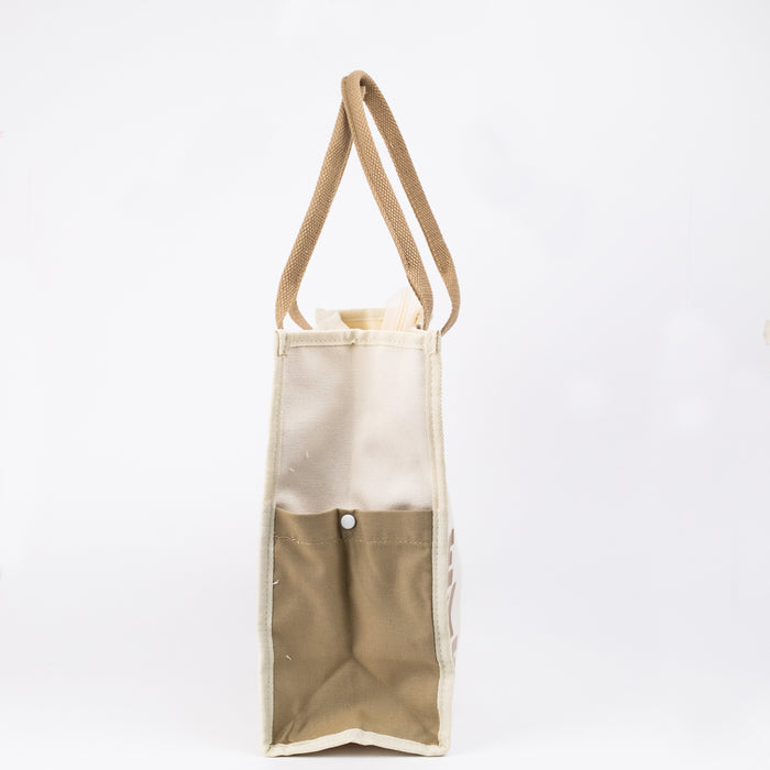 Multipurpose Tote Bag with Zipper (Be Unique) - Cream/Khaki