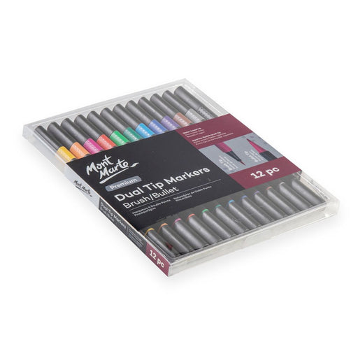 View full detailsMont Marte Dual Tip Markers Brush & Bullet – Premium 12 Colour Set