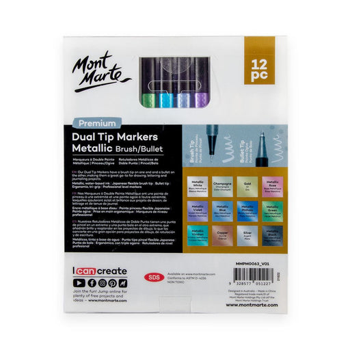 View full detailsMont Marte Dual Tip Metallic Markers Brush & Bullet – Premium 12 Colour Set