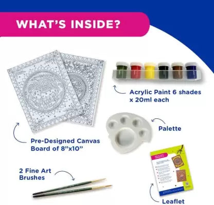 Begin a journey into the captivating realm of Madhubani art with the Fevicryl Madhubani Kit. Originating from the Mithila region of Bihar, India, Madhubani painting, also known as Mithila art, boasts a rich cultural heritage dating back to ancient times. Delve into the vibrant colors and intricate patterns of this traditional Indian folk art. Whether you're new to art or an experienced creator