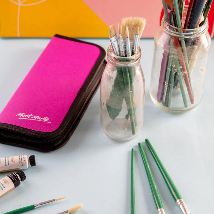 The Mont Marte Oil Brush Set is a beautiful selection of hog hair bristled brushes ideal for oil projects. The handy zip case is perfect for travel and helps to extend the life of your brushes.